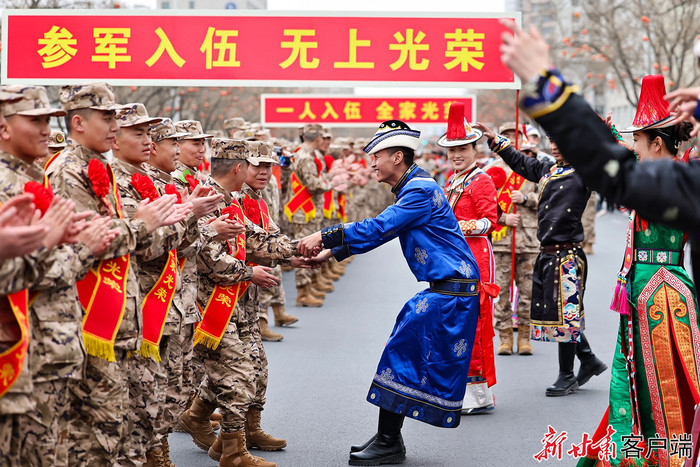 3月16日,通渭县举行2026年上半年荷戈新兵欢送庆典,一批通渭好后生行将告别家乡,开启兵马生存。新甘肃·甘肃日报通信员张赛