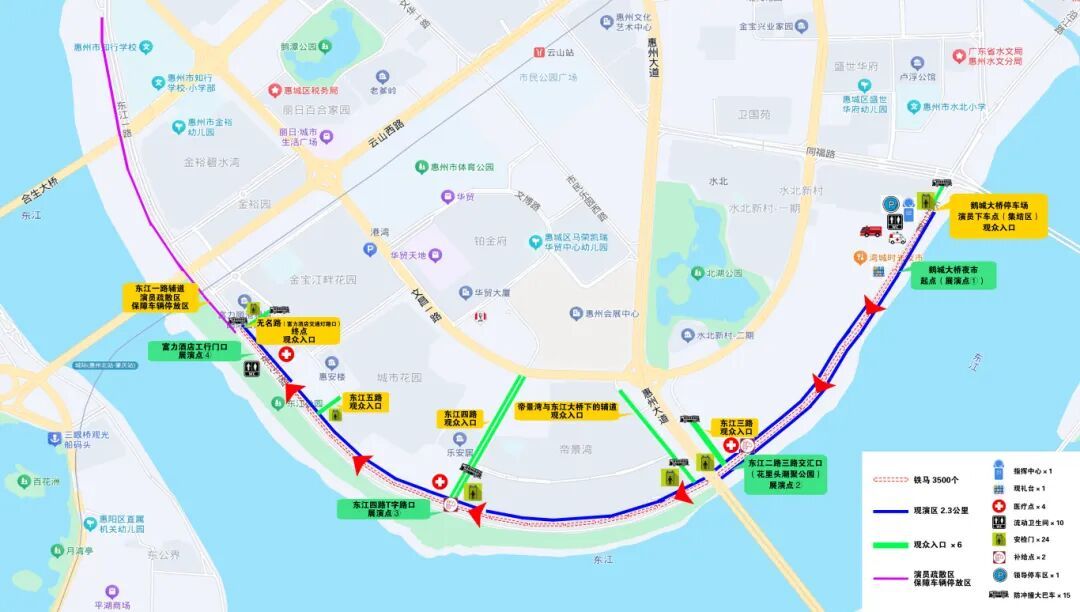鹅城大桥(起原)—花里头·潮聚公园—东江公园—富力万丽栈房(至极)