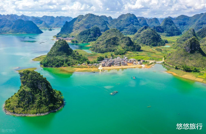 渠洋湖畔的喀斯特峰林,有点下龙湾的嗅觉。吃饭玩耍,局面颜面,湖鱼鲜好意思,清冷惬心。