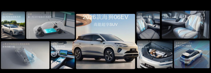 在智能方面,2026款海狮06EV全系升级撑抓选装天使之眼5.0,具备城市领航支持(CNOA)、高快智驾支持(HNOA)、全场景停车等更丰富的智能驾驶支持功能;在舒享方面,新车新增了前排座椅细腻、前排座椅推拿、前排座椅腰撑、副驾腿托以及香氛等高质感建设,打造出如移动起居室般的舒畅出行空间;同期,全系标配的云辇-C智能阻尼车身甩手系统,新增了路面预瞄功能,行驶更巩固。新增的琉光银外不雅色与暮色蓝内饰配色,旺盛了不同用户的个性化需求。此外,新增的TBC高速爆胎稳行系统,能在140km/h高速爆胎时毫秒级介入,将车辆横向偏移甩手在0.75米以内,带来稳稳的安全感。