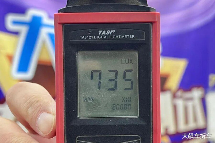 这辆车的大灯是LED光源,最大光照度为7350勒克斯,照明度相等可以。