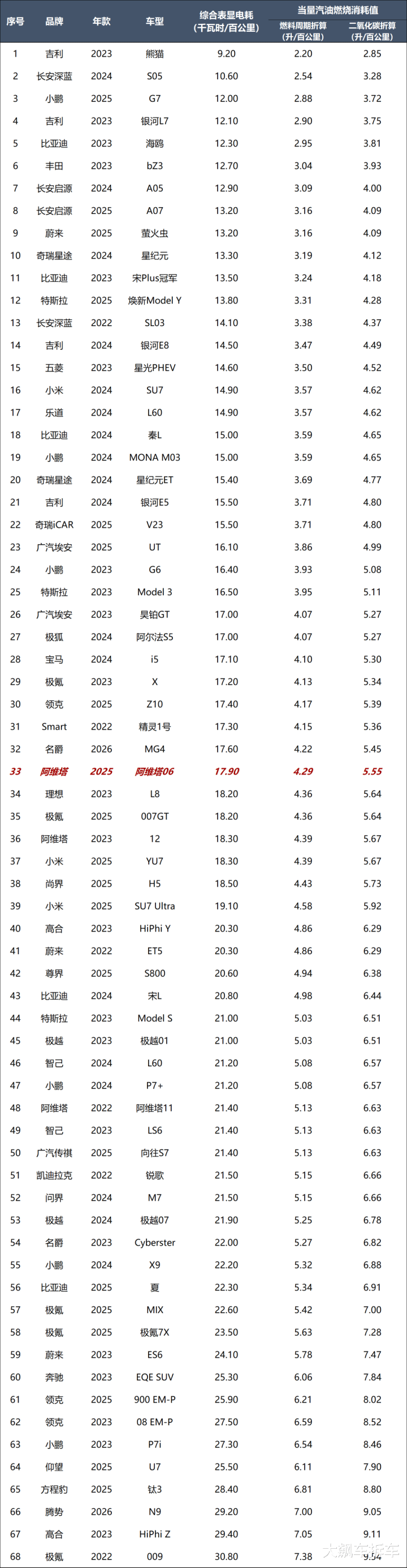 凭据表显近百公里的平均电耗17.9千瓦时,由国标计较公式可以得出,按照燃料生命周期计较,当量汽油百公里消费为4.29升;要是按照二氧化碳排放量计较,当量汽油百公里消费为5.55升。