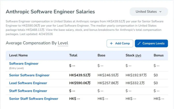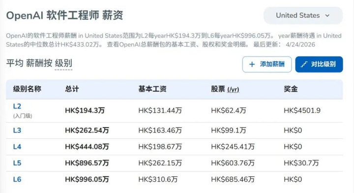 凭证 Levels.fyi 2025-2026年度的及时薪酬监测显现,在西雅图及硅谷地区,OpenAI或Anthropic等头部AI机构的高档谈论员(L5/L6级别),其包含基础薪资与期权奖励在内的总包不时守护在 $80万至$120万 之间;比较之下,同级别的大型科技公司常常后端架构师,其薪酬中位数约为 $35万至$45万。这种约 2.5倍 的薪资级差,折射出底层工夫驱能源的根人性位移。