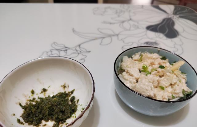 再配上两个小菜,韭菜花,凉拌豆腐,一顿丰盛的午餐,就完成了。