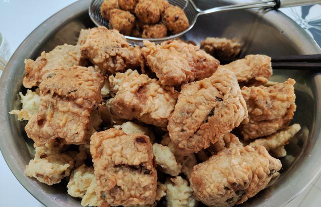 启动油炸了,滋滋啦啦一阵子,香气扑面呀!这种油炸的香味,能传出去好远,意想邻居齐知谈我家过油啦!