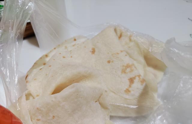 从超市买来的单饼,软乎乎的,恰巧吃。