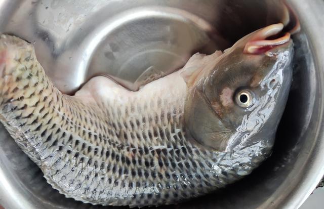 回到家,把鱼放在盆子里,再次清洗干净,扣掉鱼鳃,剔除鱼麟,抽掉鱼筋,用刀把鱼头鱼尾剁下来。放一边备用。