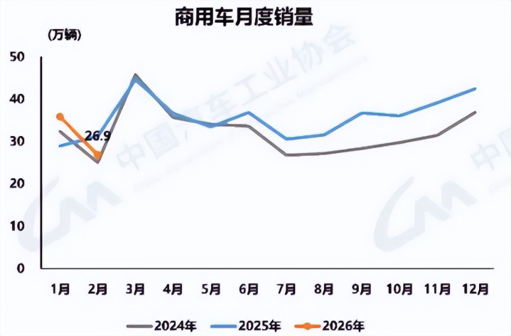 2月,受春节假期、责任日减少、节前需求聚拢开释、末端不雅望神志浓等要素影响,国内商用车市集呈现阶段性承压态势,产销同比、环比均有所回落。