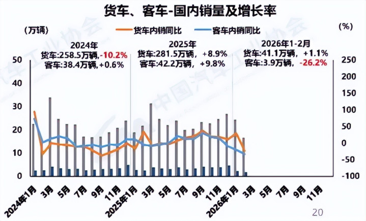 2月商用车市集呈现三大特征:一是季节性移动较着,春节淡季导致销量回落,属遍及周期波动;二是结构性分化加重,微卡、重卡累计增长,轻卡、轻客短期承压,大中型客车好于轻型客车;三是增长动能切换,国内需求疲软时,出口与新动力成为镇定器。
