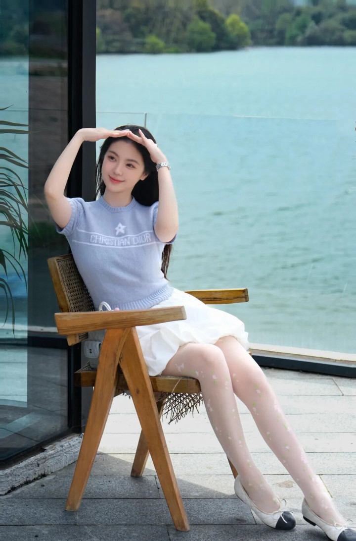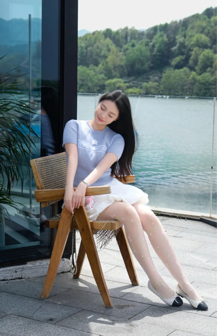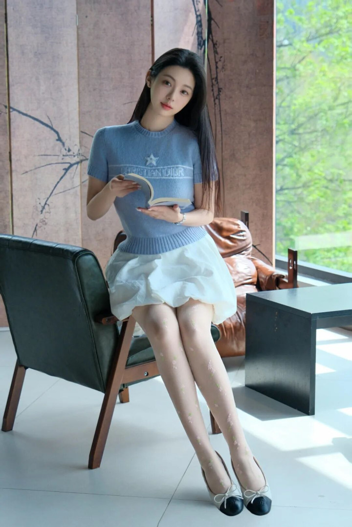 米兰 颜值穿搭: 浅蓝短袖至意衫+白色花苞裙+拈花袜+长短拼色小皮鞋